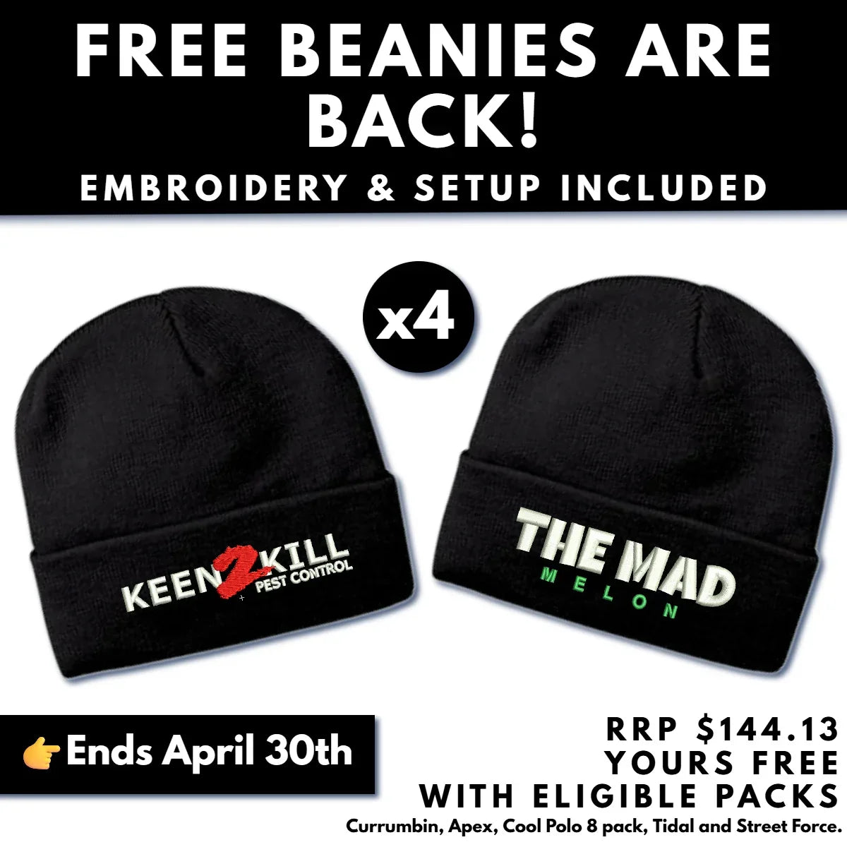 - Custom Beanies Australia: Protect your team from the cold while boosting your brand visibility with our custom beanies in Australia. Available in several styles and colours, these beanies can be embroidered with your logo, making them a stylish and practical addition to your workwear ensemble.